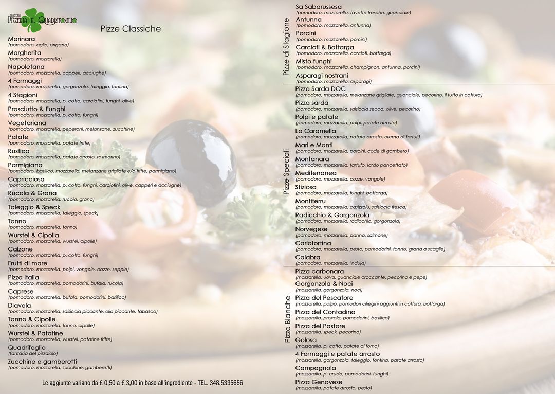 Pizzeria Il Quadrifoglio Di Gilberto Cominu Menu